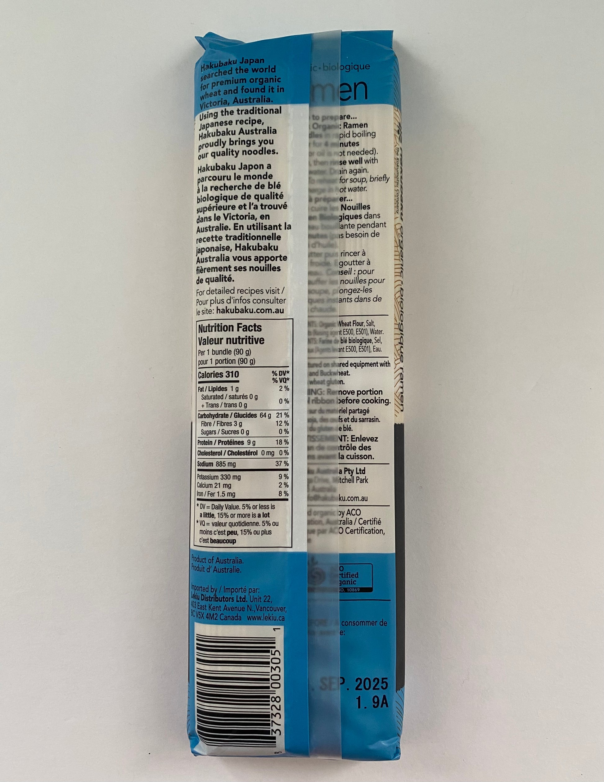 Hakubaku Ramen noodles are made with Organic Australian wheat, a wheat that is held to some of the highest standards in the world. Crafted in the traditional Japanese way, Ramen noodles have long been a staple since the 19th century. They are deliciously thin and slightly salty, and are ideal for soups and stir fries.