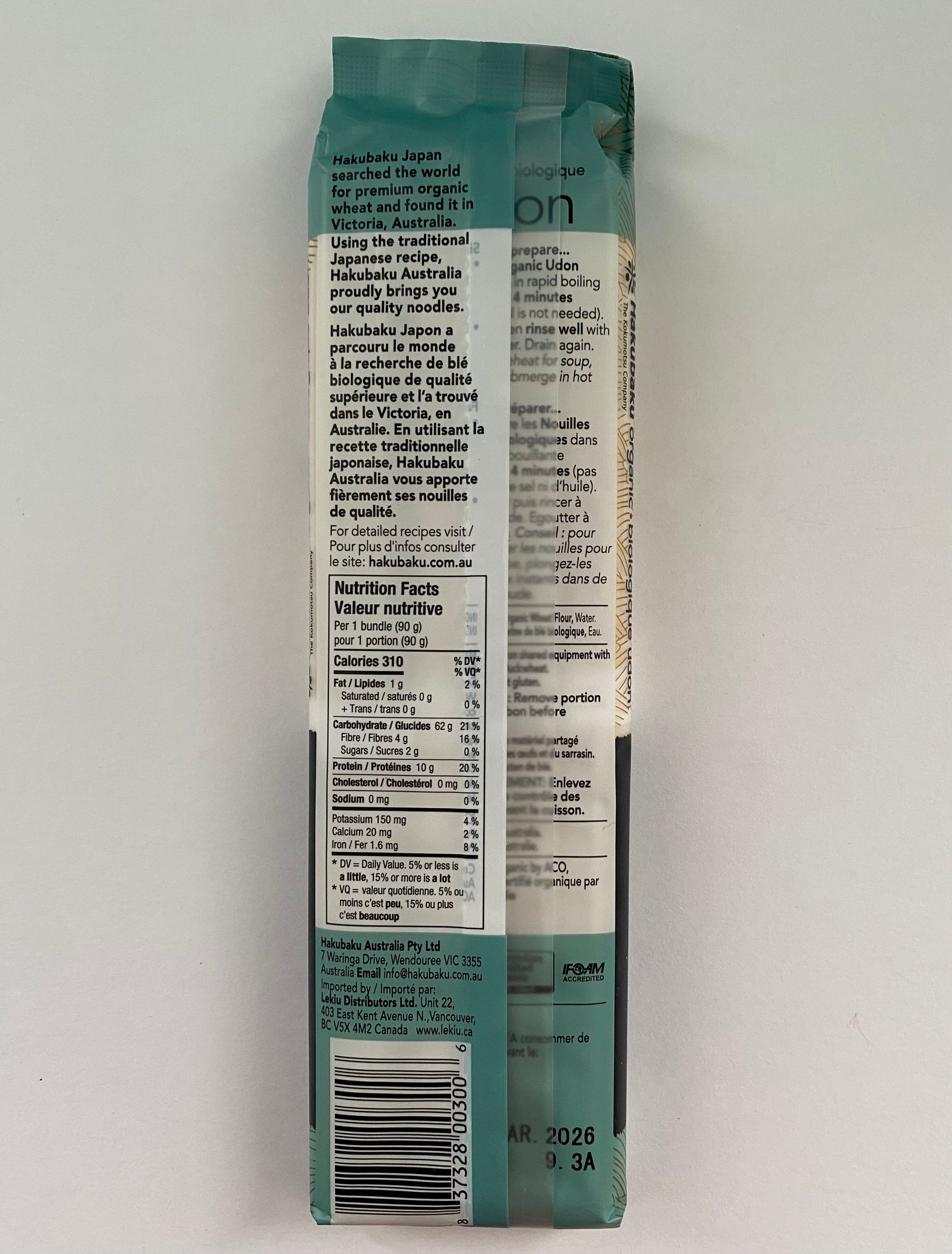 Hakubaku Udon noodles are made with Organic Australian wheat, a wheat that is held to some of the highest standards in the world. Made in the traditional Japanese way, these deliciously chewy premium noodles offer an unparalleled flavour and texture. A good source of protein and fibre, they are non GMO, and contain no salt or MSG.