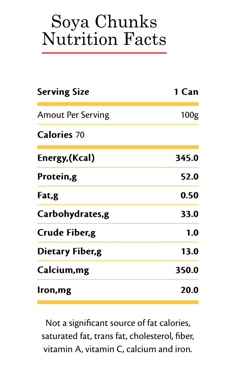 Made of defatted soy flour, they contain immunity building nutrients, protein, iron and zinc, and are rich in dietary fibre. Easy to prepare, they are a delicious addition to soups, salads, curries, noodles, stir fries, gravies, etc.